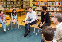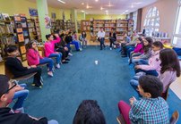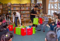 Auch in diesem Jahr beteiligte sich die Heinrich-Seidel-Schule am bundesweiten Vorlesetag (20.11.2015). Gäste im Lese- und Literaturzentrum waren die Schauspielerin Dennenesch Zoudé und der Hauptgeschäftsführer des VDZ (Verband Deutscher Zeitschriftenverleger) Stephan Scherzer sowie von der Deutschen Bahn, die Mitinitiator des Vorlesetages ist, Frau Thams, Frau Triebs, Frau Henschke und Herr Koch. Wir freuten uns über einen Koffer voll mit schönen Büchern für das Lese- und Literaturzentrum, das integraler Bestandteil der ergänzenden Förderung und Betreuung an der Heinrich-Seidel-Schule ist. Auch Frau Zoudé und Herr Scherzer hatten Lesenswertes dabei; jede/r Schüler/in erhielt eine große Tüte mit Zeitschriften und Büchern.