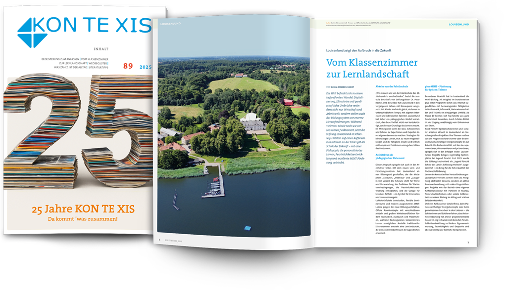 Liebe Leserinnen und Leser, gemäß unserer Abonnentendatei sind einige unter Ihnen, die dem KON TE XIS-Magazin bereits seit dessen erster Ausgabe vor 25 Jahren die Treue halten. Manch einer wird sich vielleicht verwundert die Augen reiben, dass ihm unsere Publikation schon seit einem Vierteljahrhundert als Informations- und Ratgeber sowie Forum des Erfahrungsaustausches für die pädagogische Arbeit zur Seite steht. In diesem Zeitraum hat sich viel getan, die Herausforderungen für jeden von uns sind nicht geringer – und unsere Welt nicht sicherer – geworden. Angesichts zahlreicher Turbulenzen und Unwägbarkeiten, die nicht nur dem Redaktionsteam, sondern höchstwahrscheinlich auch Ihnen, liebe Leserinnen und Leser, so einiges abverlangen, können wir mit Genugtuung und Dankbarkeit konstatieren, dass das KON TE XIS-Magazin noch immer erscheint – und weiter erscheinen wird. Unsere Bilanz kann sich dabei durchaus sehen lassen: Bisher sind 89 Ausgaben des KON TE XIS-Magazins und 48 Ausgaben der KON TE XIS-Arbeitshefte zu den Wissenschaftsjahren erschienen, deren Gesamtauflage bei mehr als zweieinhalb Millionen Exemplaren liegt. Alle diese Publikationen stehen nach wie vor als pdf-Files zum kostenlosen Download auf der Homepage unseres Trägers zur Verfügung. Die aktuelle Ausgabe fühlt sich unseren Traditionen verpflichtet, indem sie ein vielschichtiges Spektrum an Themen aufgreift, die von aktueller Relevanz sind und Wege in die Zukunft der pädagogischen Arbeit weisen. Überzeugen Sie sich bei der Lektüre des Heftes am besten selbst, ob und wie wir diesem Anspruch gerecht werden. Ich wünsche Ihnen besinnliche Weihnachtsfeiertage sowie ein glückliches, erfolgreiches und friedliches neues Jahr!