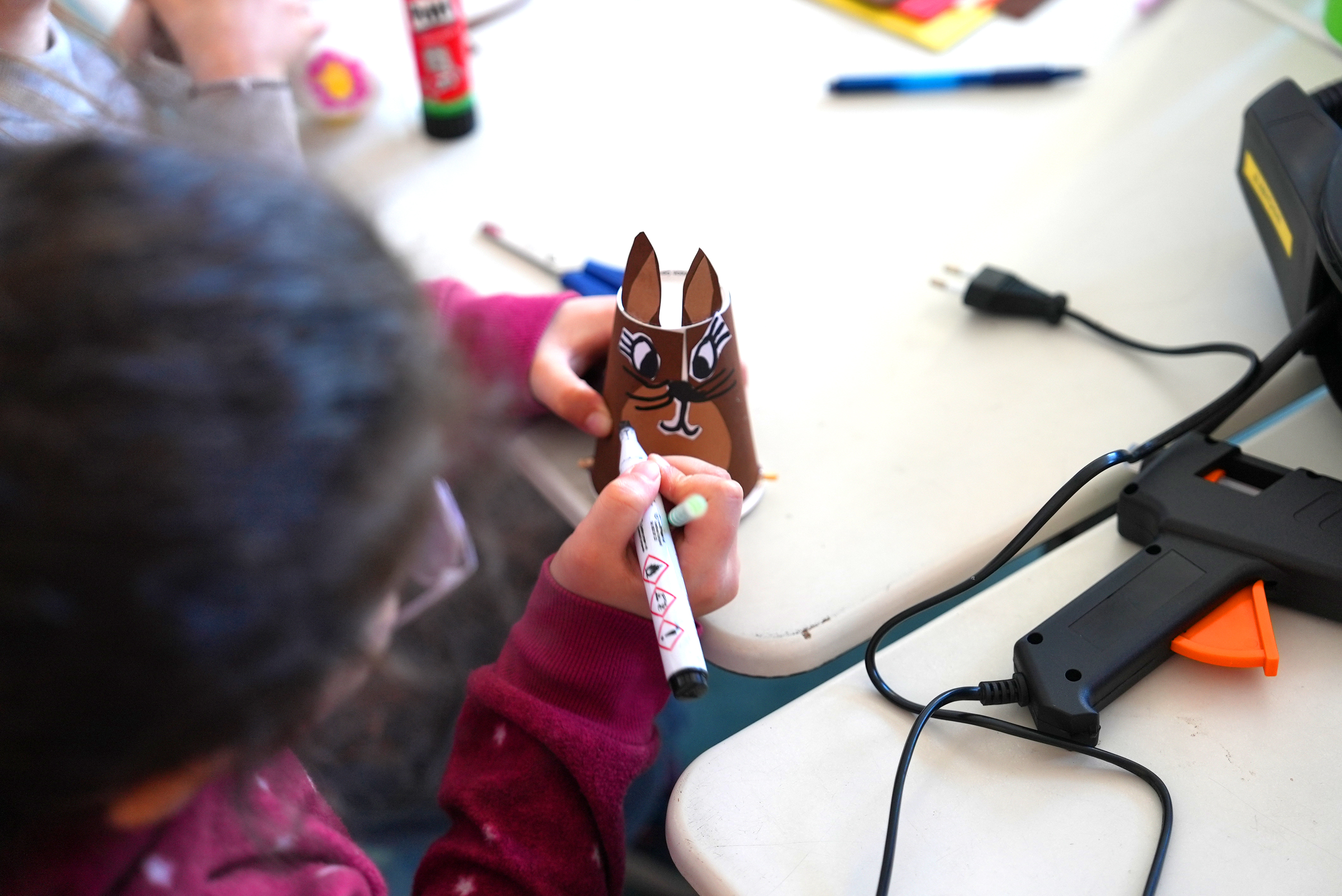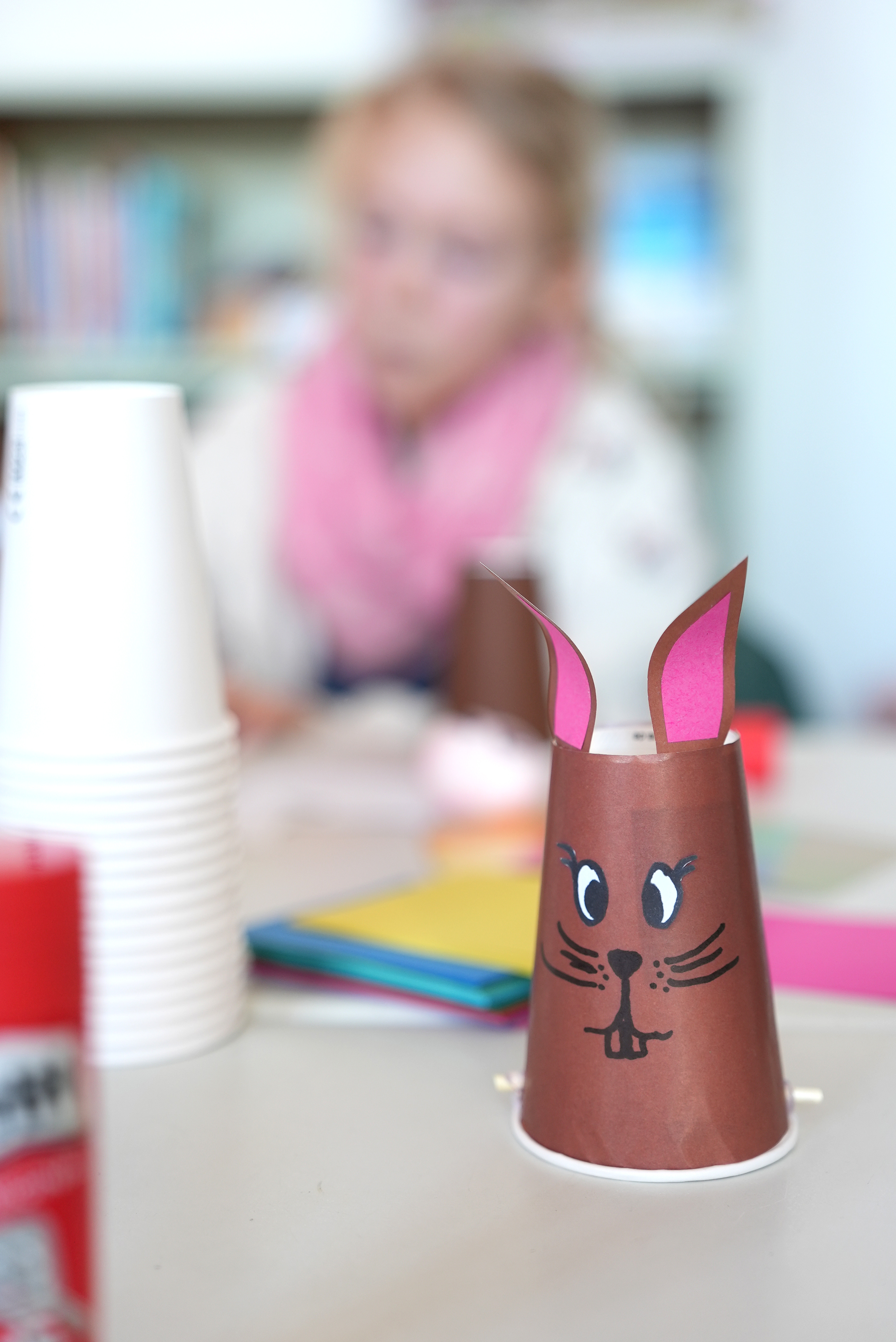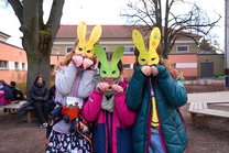 Papierflieger sollten heute rückwärts so wenig weit wie möglich fliegen, Kuschelhäschen in eine Kiste fliegen oder Möhren kopfüber durch die Beine in einem Hasenschlund landen. Klingt albern? Das war es mit Sicherheit! Aber es gab auch viele schöne Basteleien, die mit nach Hause genommen werden konnten. Angebote wie "Wabbel-Hasen-Werkstatt", "Närrische Schachtel" oder "Hoppel-Chaos auf großem Fuß" weckten die Neugierde der Kinder und wir haben zum Abschluss viele begeisterte Gesichter und schöne Andenken gesehen. Mit einem tjfbg-Mini-Eier-Karton haben wir die Kinder verabschiedet und uns gefreut, dass die Schulen den zum Teil weiten Weg nach Mahlsdorf auf sich genommen und den närrischen Tag miteinander verbracht haben.