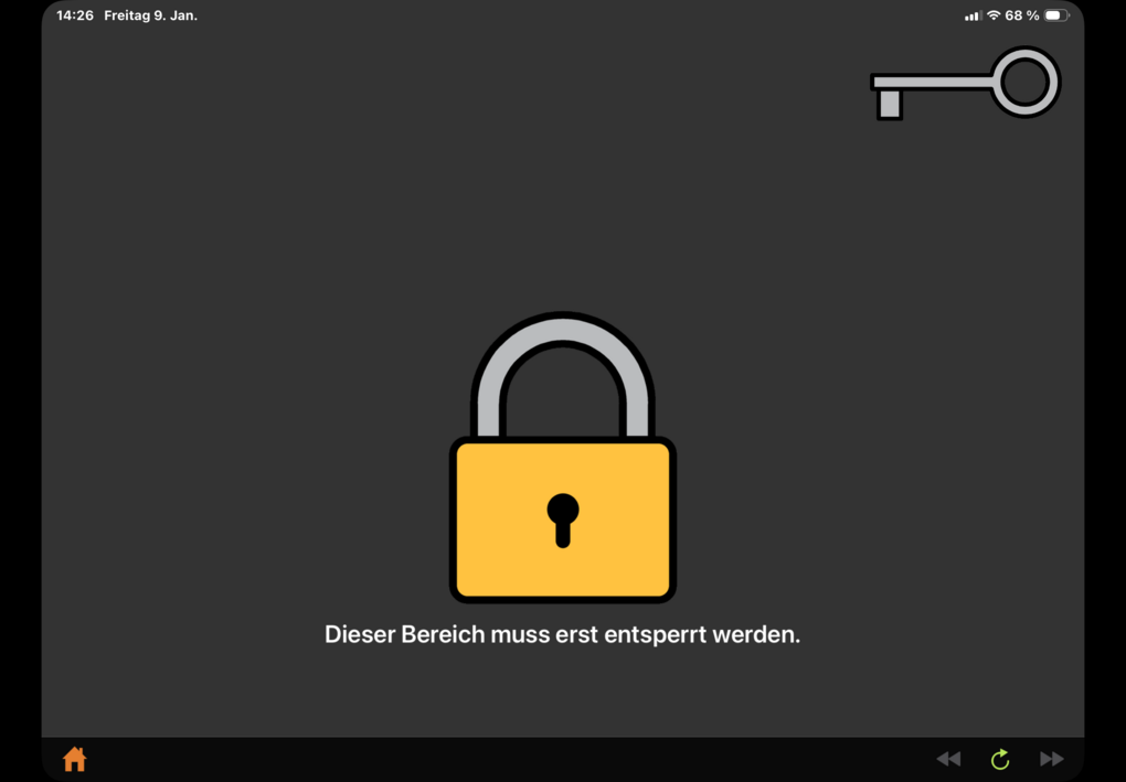 Mit JA bestätigen und durch Ziehen des Schlüssels Bereich entsperren: