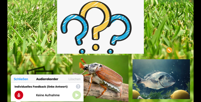 - Quiz mit Sprachaufnahmen versehen wollen, dass man nicht lesen können muss.