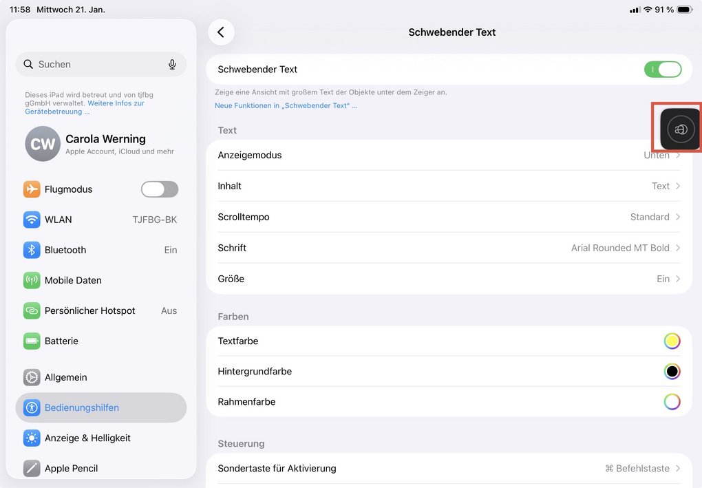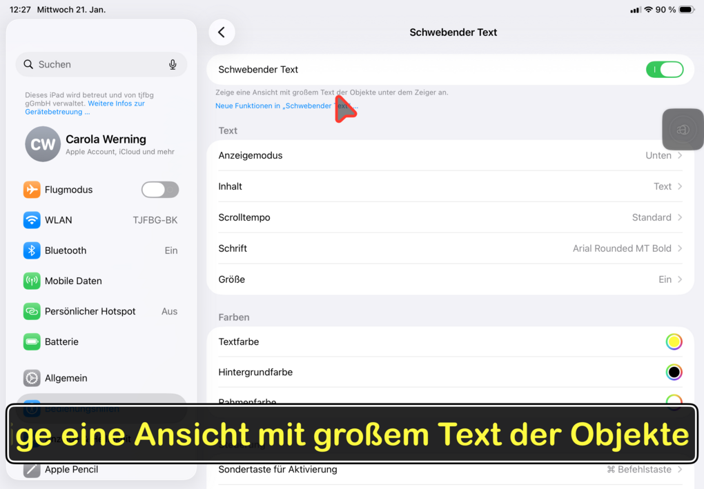 Heute geht es um eine assistive Funktion, die es lange nur für Macs, mittlerweile aber auch für iPads gibt - den sogenannten "Schwebenden Text". Was zunächst etwas mysteriös wirkt, erweist sich als spannendes Feature, insbesondere für Menschen mit Sehbeeinträchtigungen.