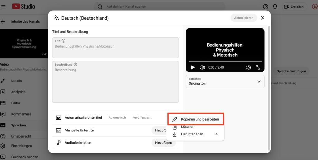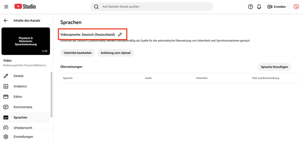 Bei Videosprache "Deutsch (Deutschland) auf das Stiftsymbol klicken.